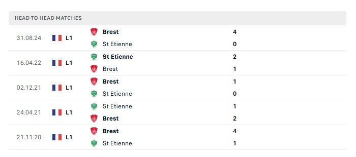 Lịch sử đối đầu Saint Etienne vs Stade Brestois