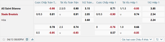 Soi kèo châu Á, kèo Saint Etienne vs Stade Brestois