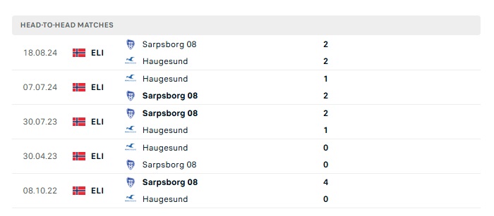 Lịch sử đối đầu Sarpsborg vs Haugesund