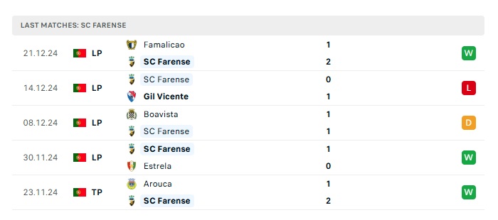 Phong độ gần đây SC Farense vs Vitoria Guimaraes