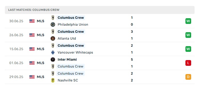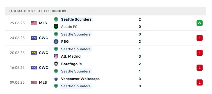 Phong độ gần đây Seattle Sounders vs Columbus Crew