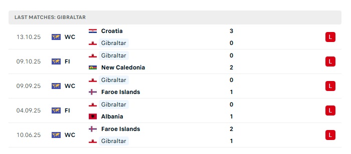Gibraltar: Hankins; Ronan, Lopes, Annesley; Jolley, Bent, Perera, Valarino; Scanlon, De Barr, Richards.