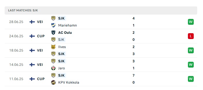 Trong thời gian qua, phong độ thi đấu của hai đội không có sự chênh lệch quá lớn. Cụ thể thì với chủ nhà SJK, họ được ghi nhận đã có 4 chiến thắng, 1 hòa và 1 thua trong 6 trận đấu gần nhất. Trong khi đó thì Ilves đã thắng 4, hòa 1 và thua 2 trong 7 trận đấu gần đây nhất của mình. Do đó, các chuyên gia đều tin rằng SJK sẽ chỉ có thể có được 1 điểm trong ngày thi đấu hôm nay.