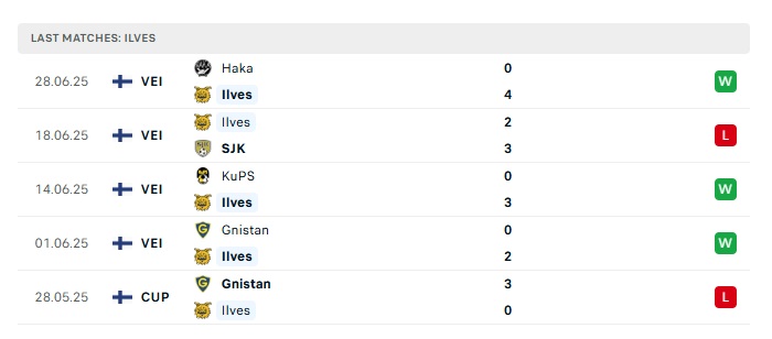 Phong độ gần đây Seinajoen JK vs Ilves Tampere