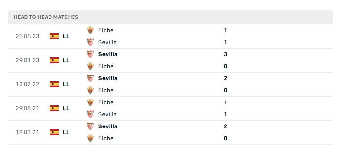 - Kèo tỷ số H2 Sevilla vs Elche: 0-0