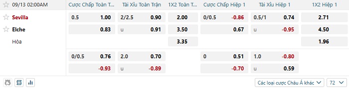 Soi kèo châu Á, kèo Sevilla vs Elche