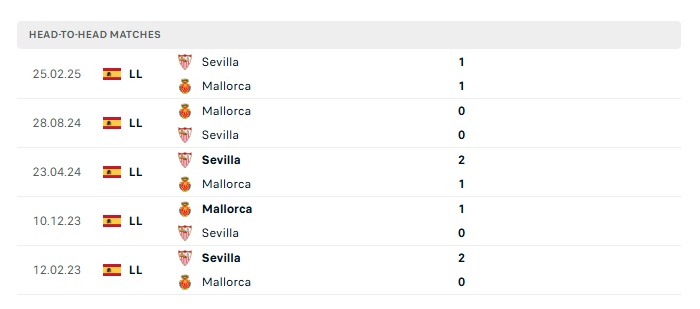 • Kèo tỷ số H2 Sevilla vs Mallorca: 3-1