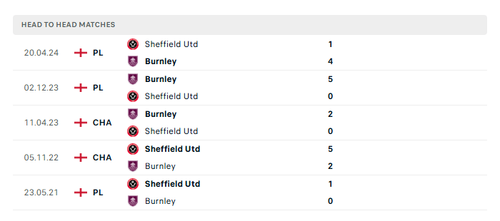 Lịch sử đối đầu Sheffield Utd vs Burnley