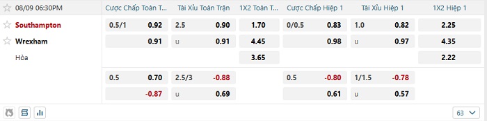 Soi kèo châu Á, kèo Southampton vs Wrexham