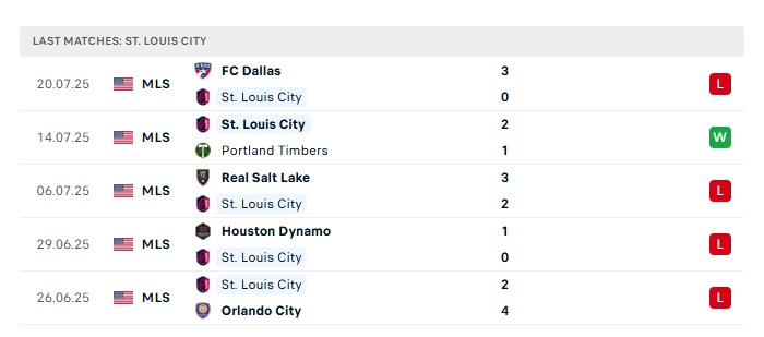 • Phong độ gần đây St. Louis City SC