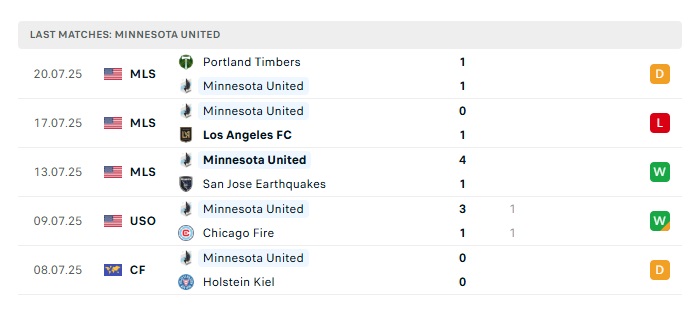 • Phong độ gần đây Minnesota Utd