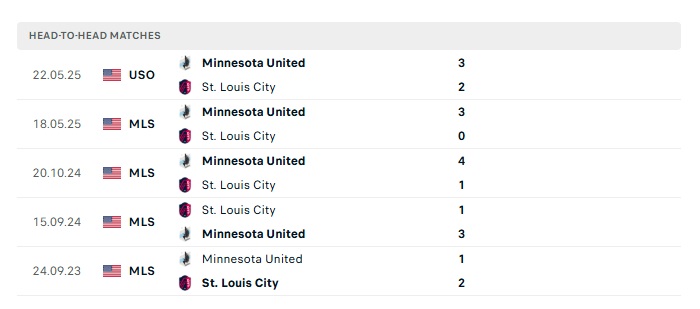 Lịch sử đối đầu St. Louis City SC vs Minnesota Utd