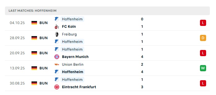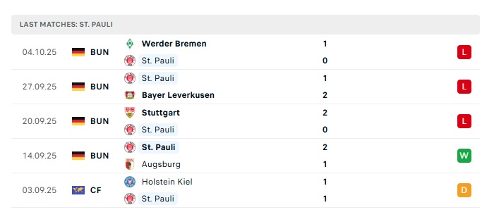 Phong độ gần đây St. Pauli vs Hoffenheim