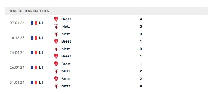 Đang có kết quả thi đấu tương đối ngang ngửa nhau, hai đội chắc chắn sẽ cống hiến 1 trận đấu thú vị. Với Metz, họ đang có mặt ở vị trí thứ 14 trên BXH cùng 11 điểm sau 12 vòng đấu đã qua. Trong khi đó thì Brestois đang có mặt ở ngay vị trí thứ 15 cùng 10 điểm sau 12 vòng. Do đó, các chuyên gia đều tin rằng đội khách Metz vẫn có khả năng giữ lại cho mình 1 điểm trong ngày thi đấu hôm nay.