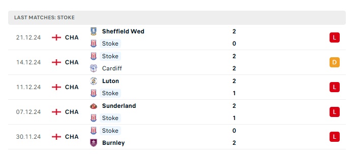 - Phong độ gần đây Stoke City