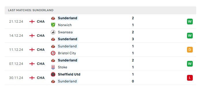 - Phong độ gần đây Sunderland