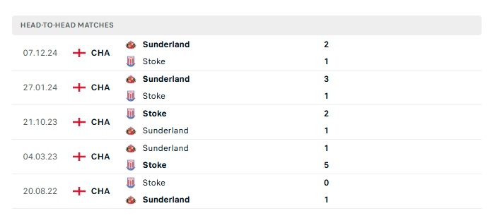 Lịch sử đối đầu Stoke City vs Sunderland