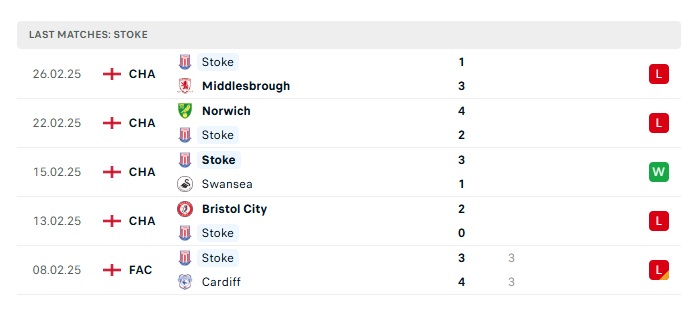 - Phong độ gần đây Stoke City