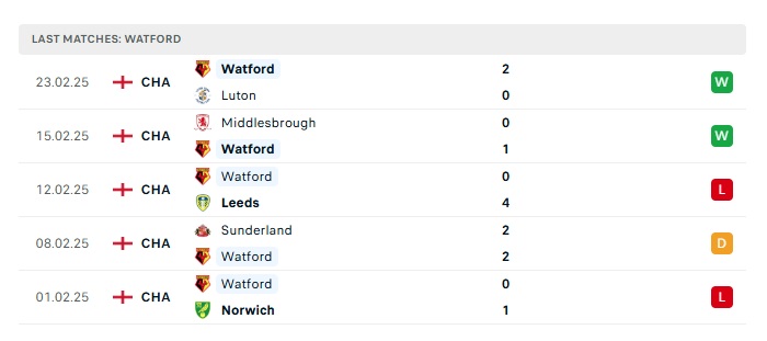 - Phong độ gần đây Watford