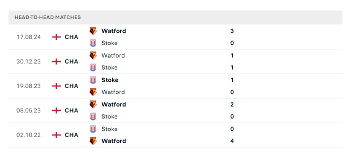 Phong độ gần đây Stoke City vs Watford
