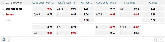 Soi kèo châu Á, kèo Stromsgodset vs Tromso