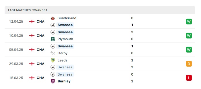 • Phong độ gần đây Swansea City