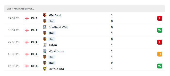 • Phong độ gần đây Hull City
