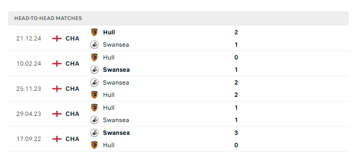 Phong độ gần đây Swansea City vs Hull City