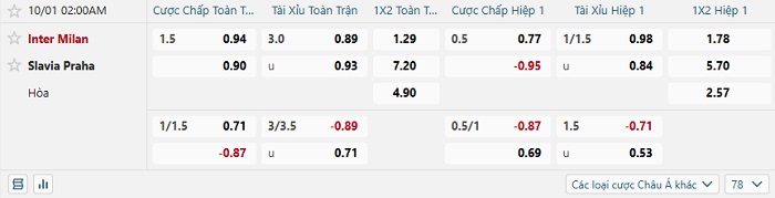 Tip kèo Châu Á full trận Inter Milan vs Slavia Praha