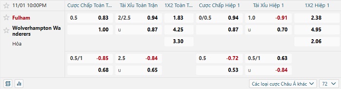Tip kèo Châu Á full trận Fulham vs Wolves