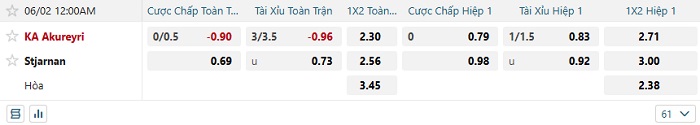 Tip kèo Châu Á hiệp 1 Akureyri vs Stjarman