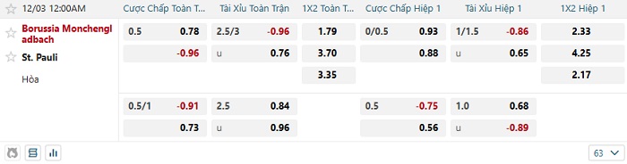 Tip kèo tỷ số Monchengladbach vs St. Pauli