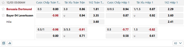 Tip kèo Châu Á full trận Dortmund vs Bayer Leverkusen