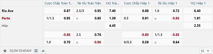 Tip kèo Châu Á full trận Rio Ave vs Porto
