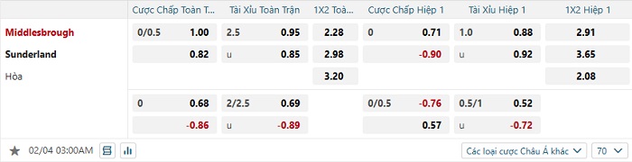 Tip kèo Châu Á full trận Middlesbrough vs Sunderland