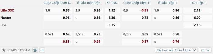 - Dự đoán tỷ số hiệp 1: Lille 1 – 0 Nantes