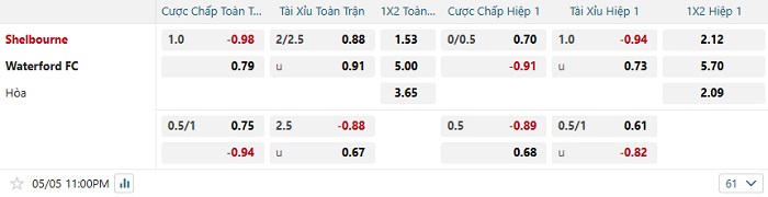 - Dự đoán tỷ số hiệp 1: Shelbourne 1 – 0 Waterford