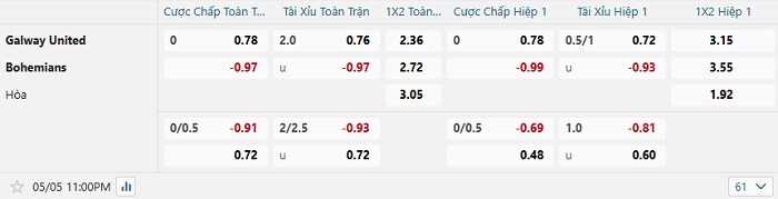- Dự đoán tỷ số hiệp 1: Galway 0 – 0 Bohemians