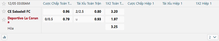 Tip kèo Châu Á full trận Sabadell vs La Coruna