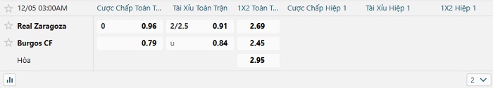 Tip kèo Châu Á full trận Zaragoza vs Burgos