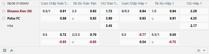 Tip kèo Châu Á hiệp 1 Dinamo Kiev vs Pafos