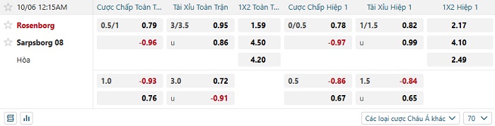 - Tip kèo cá cược Châu Á hiệp 1: Chọn Rosenborg -1/4