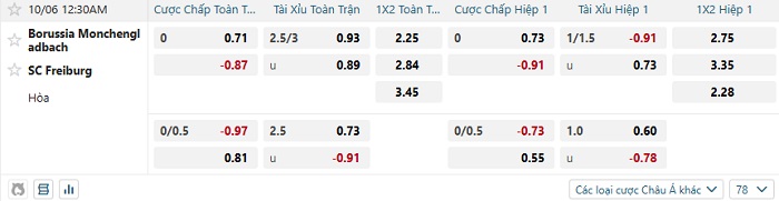 - Dự đoán tỷ số hiệp 1: Monchengladbach 0 – 0 Freiburg