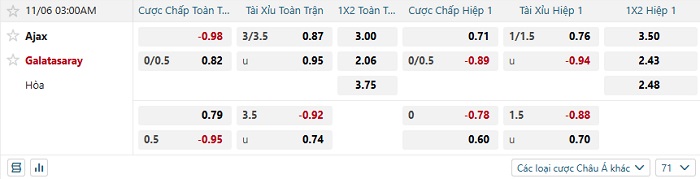 Tip kèo Châu Á hiệp 1 Ajax vs Galatasaray
