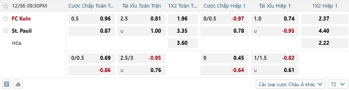 Tip kèo Châu Á hiệp 1 Koln vs St. Pauli