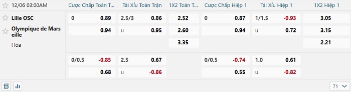 Tip kèo tỷ số Lille vs Marseille