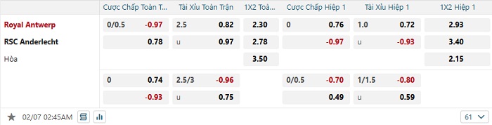 Tip kèo Châu Á hiệp 1 Royal Antwerp vs Anderlecht