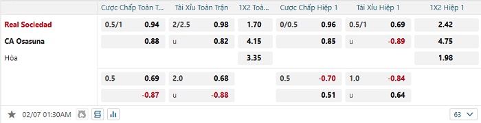 Tip kèo Châu Á full trận Real Sociedad vs Osasuna