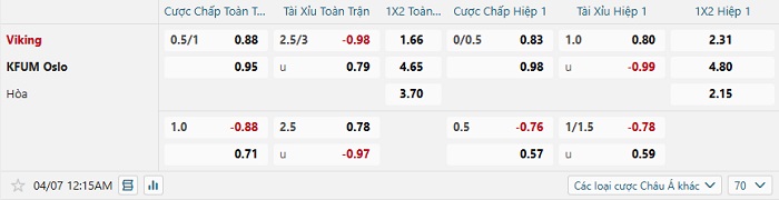 Tip kèo Châu Á hiệp 1 Viking vs Oslo