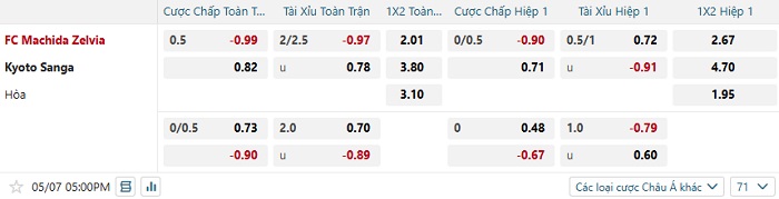 Tip kèo Châu Á hiệp 1 Machida Zelvia vs Kyoto Sanga